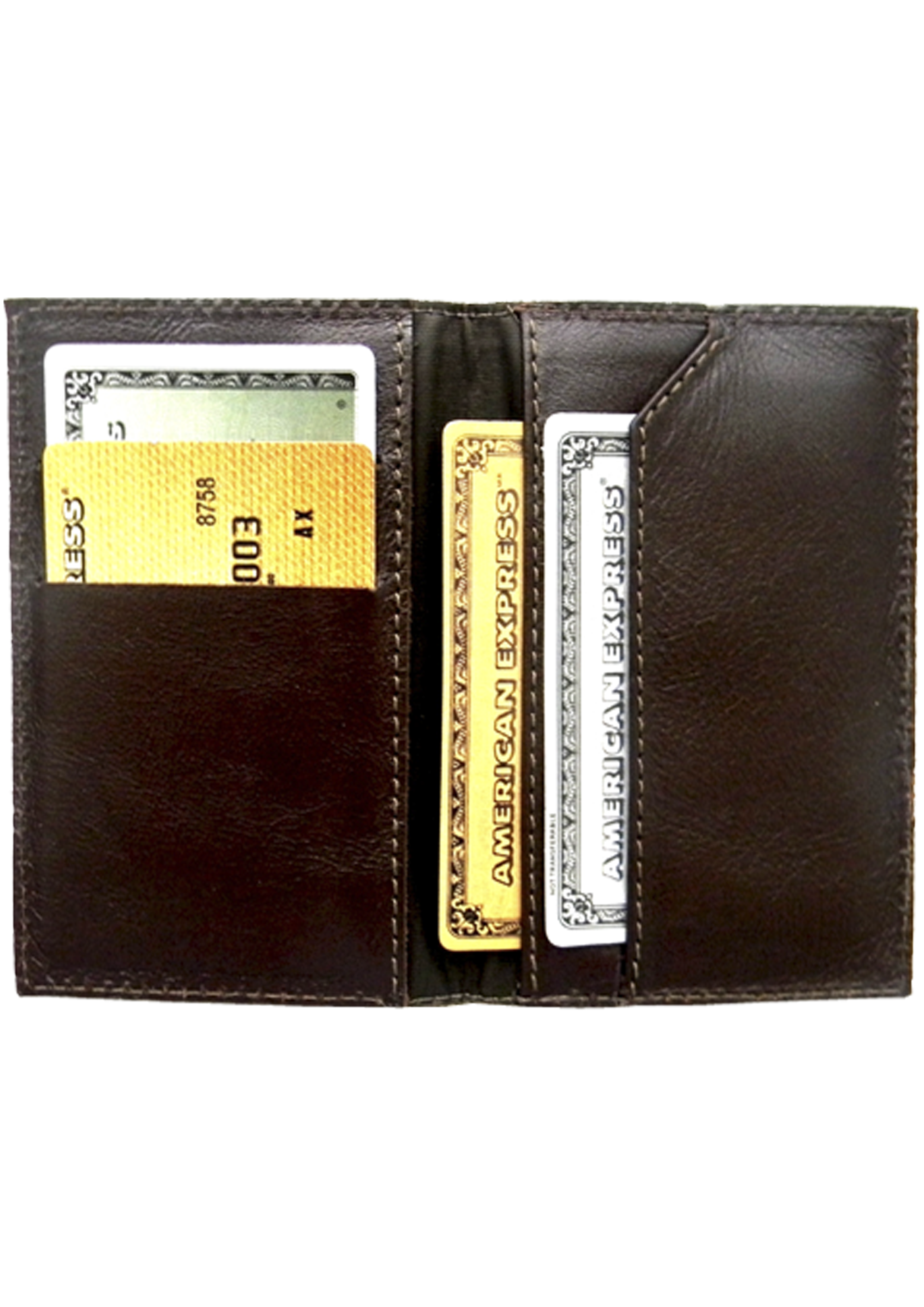 Porta Cartões Modelo Semi Luxo, podendo ser confeccionado em Couro Natural ou material sintético, totalmente pespontado, contendo cinco compartimentos para cartões sem fole.