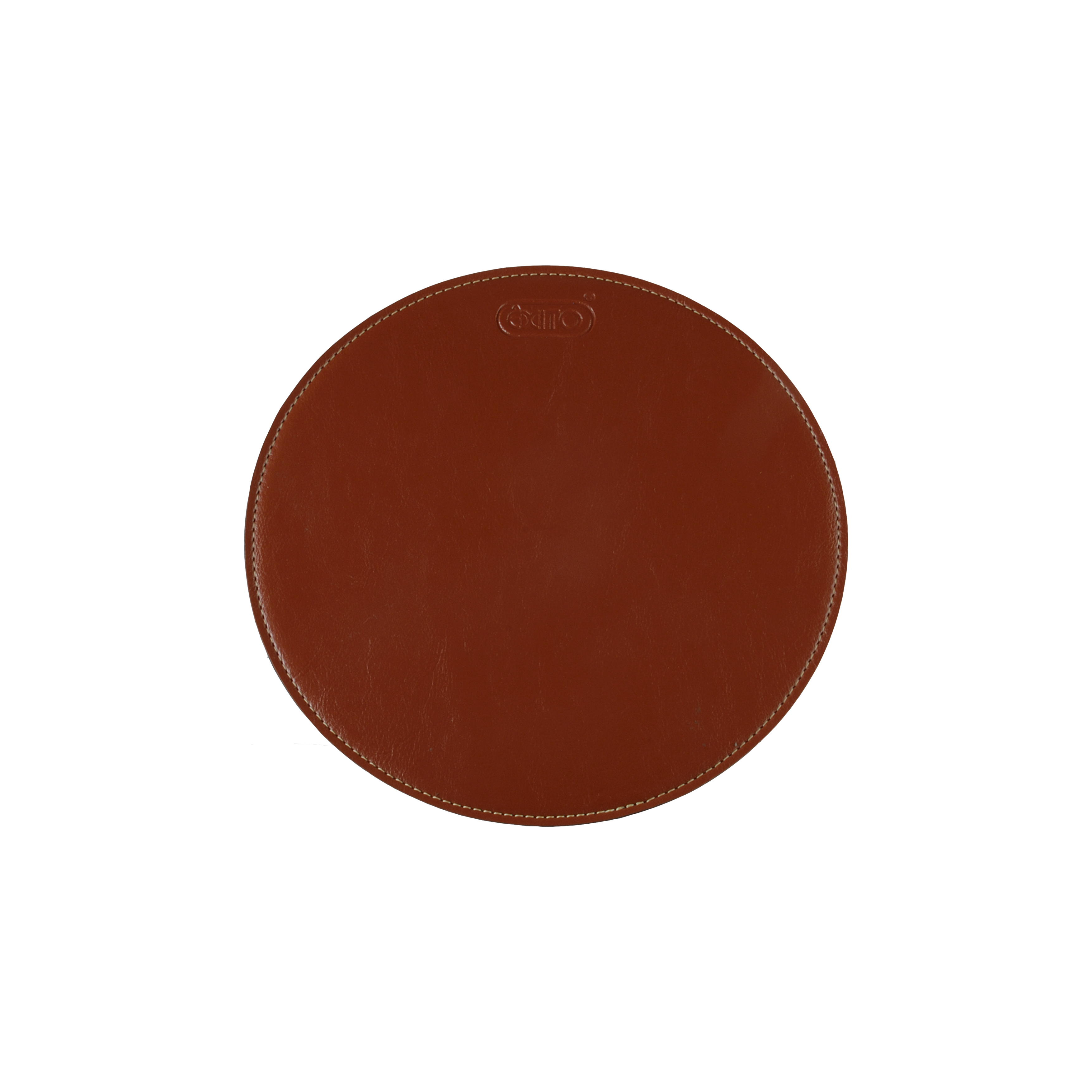Mouse Pad Redondo, podendo ser confeccionado em Couro Natural ou material sintético, totalmente pespontado, contendo base em EVA.